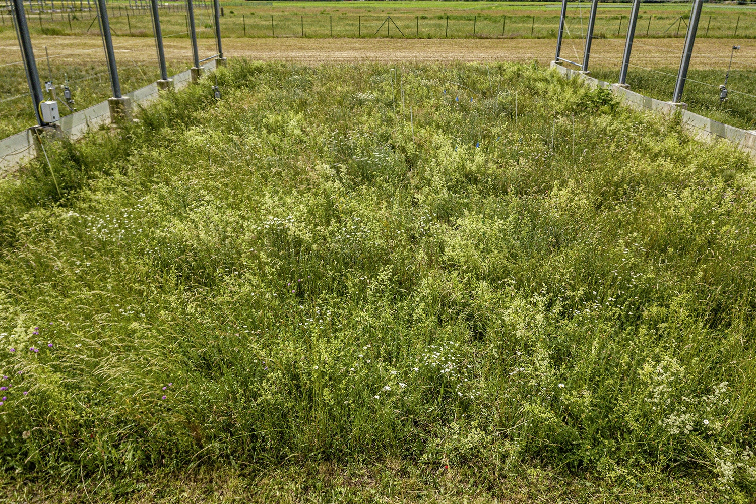 Möglich wurde das durch das gross angelegte Langzeitexperiment des UFZ in Bad Lauchstädt bei Halle, die GCEF (Global Change Experimental Facility). Sie besteht aus insgesamt 50 Parzellen von jeweils 16 Meter mal 24 Meter Grösse, die unterschiedlich intensiv genutzt werden. Gleichzeitig lassen sich dort mithilfe von Foliendächern die Temperaturen und Niederschlagsmengen manipulieren. Einige Flächen erhalten so zum Beispiel im Frühjahr und Herbst zehn Prozent mehr und im Sommer zwanzig Prozent weniger Niederschlag als die unbeeinflussten Vergleichsflächen. Das entspricht ungefähr den Verhältnissen, die Klimamodelle in Zukunft für Mitteldeutschland erwarten lassen.