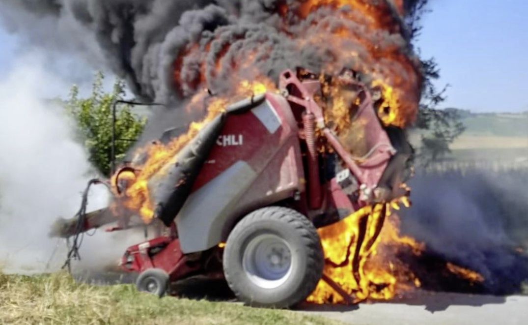 Am 10. Juli fing auf einem abgeernteten Getreidefeld bei Wilchingen eine Rundballenpresse Feuer. Auch diese Landmaschine war nicht mehr zu retten. Sie brannte vollständig aus. Die Brandursache wird auf einen technischen Defekt zurückgeführt.