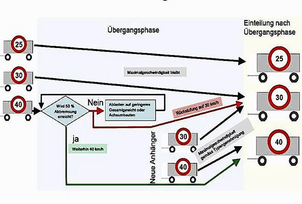 Deshalb wird man etwa im Mai des kommenden Jahres zu 90% wissen, wie die Verordnung in der Schweiz umgesetzt wird, und zu 100%, wenn der Bundesrat unterschrieben hat. Bis dahin lauten die Kaufempfehlungen der Verbände klar: Zweileiterdruckluftbremse, ALB, Papiere mit Bremsberechnung und bei Bedarf eine nachgerüstetes hydraulisches Einleiterbremse.