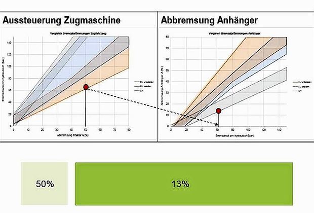 Eine Möglichkeit kann zudem die Reduktion der Geschwindigkeit oder eine Ablastung auf ein geringeres Gesamtgewicht sein. Zudem wünschen sich viele Landwirte, dass mindestens auf dem neu angeschafften Traktor ein Einleiterbremsventil montiert werden darf. Das ist nach der neuen Regelung bis 2020 bzw. 2021 noch möglich. Jedoch gilt auch hier: Die Fahrzeuge passen in Sachen Bremsleistung nicht zusammen. Stefan Marti von AM Suisse bringt noch einen anderen Aspekt ins Spiel: «Unsere Mechaniker greifen mit der Nachrüstung in das Bremssystem ein und übernehmen so die Produkthaftpflicht für die Einrichtung.»