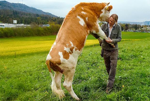 Die Kuhtrainerin oder eher Kuhflüsterin betont, dass sie keineswegs ein Freak sei, der etwas Neues erfunden habe: «Das Rind ist, das belegen Höhlenmalereien, das älteste Reit- und Arbeitstier des Menschen. Und auch heute noch werden viermal mehr Rinder als Pferde zur Arbeit auf dem Feld eingesetzt – man denke nur an die Yaks in der Mongolei oder an die Wasserbüffel auf den Reisfeldern in Asien.»