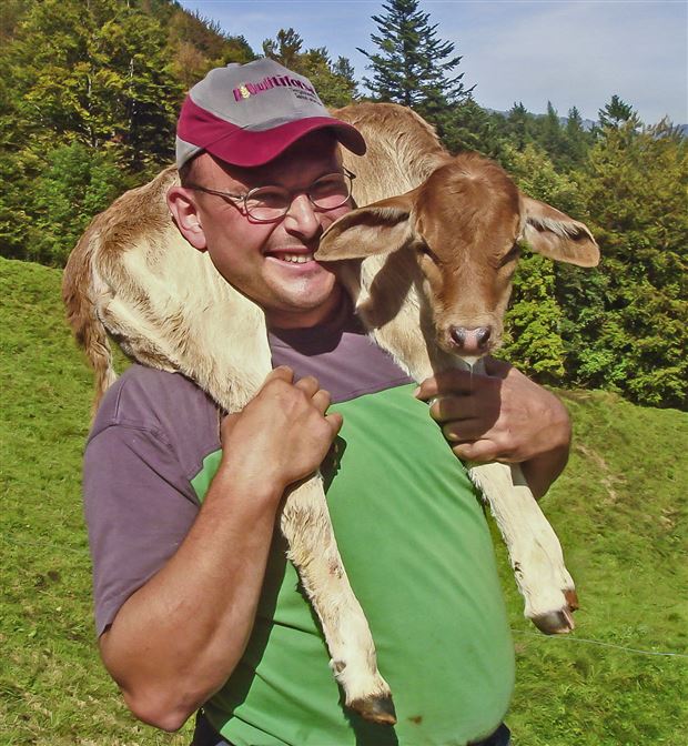 Auf dem Biobetrieb bietet er mit seiner Frau Nadia agrotouristische Events wie das Farmersgolf an, hat in seinem Partylokal Platz für bis zu 60 Gäste und betreibt einen Wohnmobil-Stellplatz. Und er bewirtschaftet 16ha Land und 10ha Alpweide, die er von zu Hause einsehen kann: «Die 14 Mutterkühe sind gegenwärtig auf der Alp, 7 Maststiere, 8 Aufzuchtrinder und 2 Zuchtstiere auf dem Heimbetrieb. Auf der Alp bieten Baumgruppen theoretischen Sonnenschutz, auf der Weide können die Rinder am Waldrand in den Schatten, und die Maststiere haben einen Unterstand im Stall. Aber die Zebus nutzen die Möglichkeiten nur selten.»