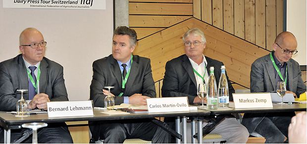 Auch BLW-Direktor Bernard Lehmann beehrte die rund fünfzig Agrarjournalisten, davon viele aus dem Ausland, mit seinem Besuch. Er betonte, die langfristig steigenden Weltmarktpreise würden die Konkurrenzfähigkeit der Schweizer Bauern verbessern. Sein Stellvertreter Jacques Chavaz, dem er allerdings im Frühling den Bereich Märkte entzogen hatte, blickte zurück auf den Ausstieg aus der Milchkontingentierung.