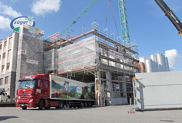 Der Erweiterungsbau für das vollautomatische Verpackungsmaterial-Lager werde auf dem bestehenden Baukörper realisiert, teilt die Züger Frischkäse AG mit. Das neue Lager mit 4 Warenliften wird 3‘000 Euro-Palletten Platz bieten. Mit der gewählten Bauweise des verdichteten Bauens erfülle das Bauvorhaben Aspekte der Ökologie in Bezug auf den sparsamen Umgang mit Landreserven. Notwendig wurde die Erweiterung der Lagerkapazitäten durch den Bedarf der Lagerplätze im Kühlregallager für Frischprodukte.
