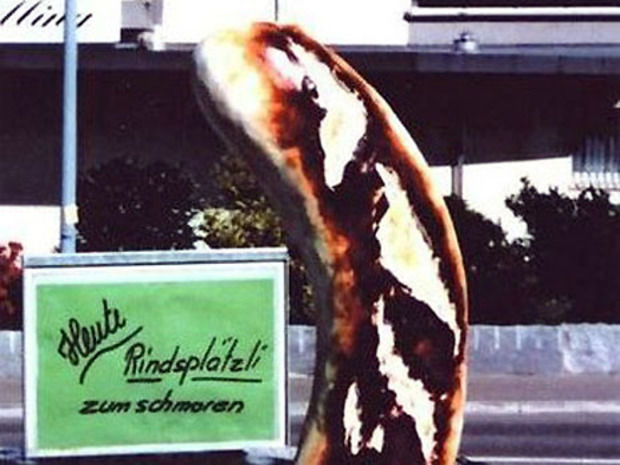 Die Riesenwurst stand bis vor wenigen Tagen auf dem Vorplatz einer Metzgerei in Hünenberg ZG und diente als Werbeobjekt. Nun sei sie spurlos verschwunden, schreibt die Polizei. Unbekannte hätten die 3000-Franken-Wurst gestohlen. Falls die Diebe wegen grossen Hungers zuschlugen, seien sie gewarnt: Die Wurst ist aus Kunststoff und nicht essbar.