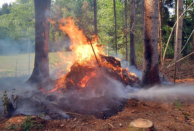 Die Feuerwehr hat am Dienstagabend im Kanton Thurgau zwei brennende Holzhaufen gelöscht. Das Übergreifen des Feuers auf den Wald konnte verhindert werden. Die Polizei sucht Zeugen.
