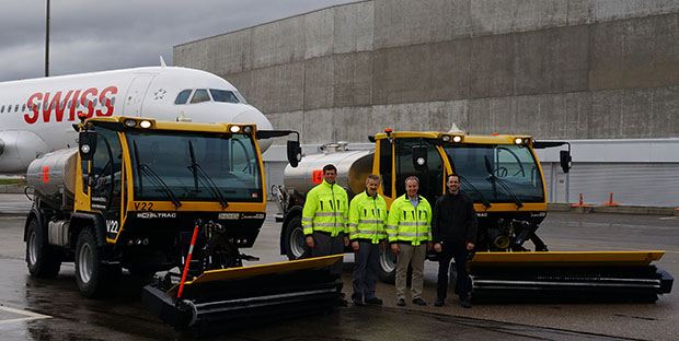 Auf dem Flughafen Zürich kommen seit diesem Winter zwei Eurotrans CVT von Schiltrac zum Einsatz. Die massgeschneiderten Spezialfahrzeuge mit Stufenlosgetriebe und 175-PS-6-Zylindermotor werden auf dem Airport für den Unterhalt und die Enteisung eingesetzt.