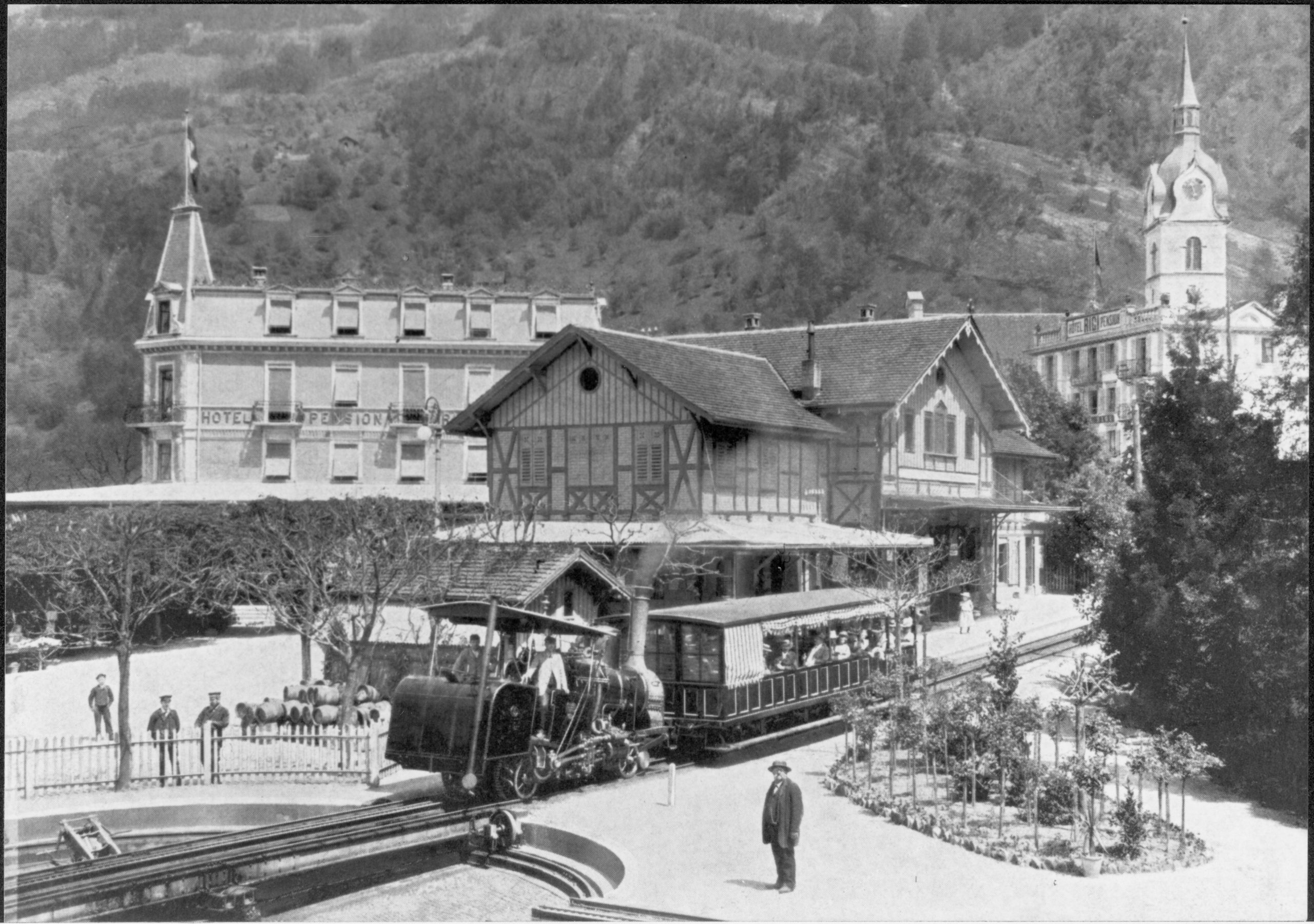 Am Sonntag, 21. Mai 1871 nahm die Vitznau-Rigi-Bahn ihren Betrieb auf, just am Geburtstag Riggenbachs. Die Fahrt bis auf den Rigi-Gipfel war dem Jubilar allerdings nicht vergönnt – die Strecke bis Kulm lag auf Schwyzer Boden. Und von dort kam Widerstand gegen das Bergbahnprojekt, wie es in der Festschrift zum Jubiläum geschrieben steht.